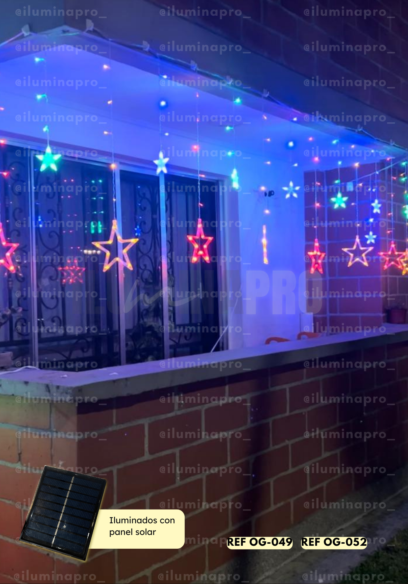Cortina solar navideña con estrellas ⭐. Hermosa, sostenible 🌍 y brillante ✨, ideal para balcones, ventanas y fachadas hasta por 10 horas 🏠.